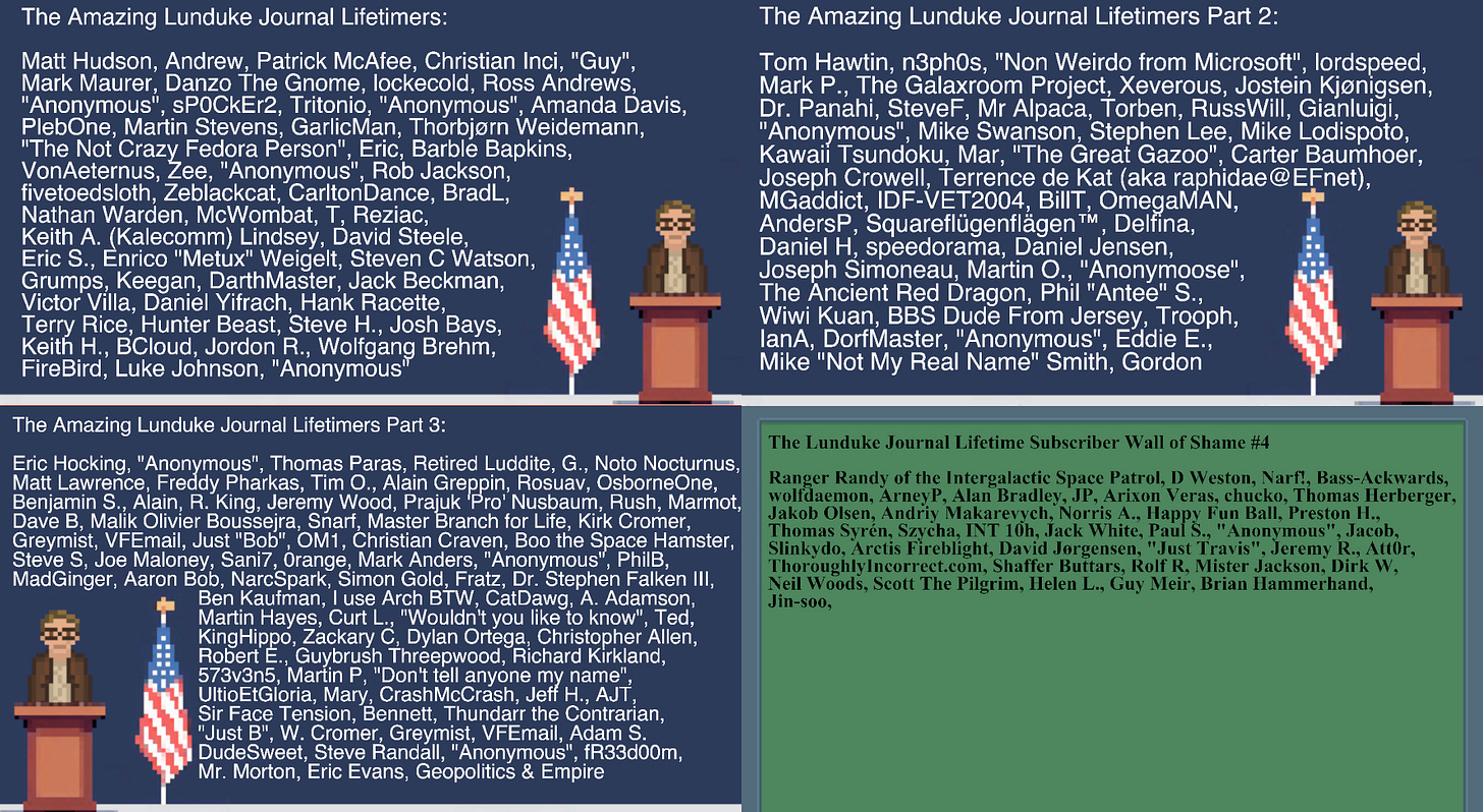 Want to be on the Wall? If you don’t have a Lifetime Subscription, grab one. If you already have one, email me (bryan at lunduke.com) to let me know how you want your name to be displayed.